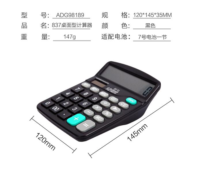晨光文具837太陽能計算器商務(wù)型辦公用會計專用科學(xué)商用學(xué)生考試大屏大按鍵計算機大號小號便攜雙電源